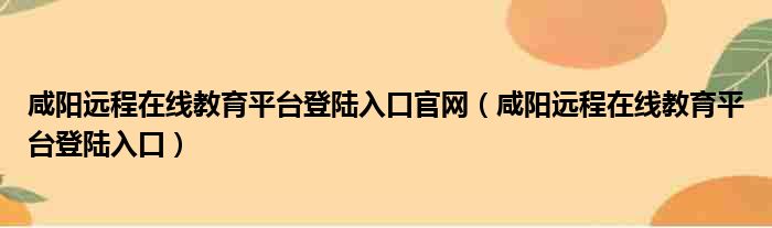 咸阳远程在线教育平台登陆入口官网(咸阳远程在线教育平台登陆入口)