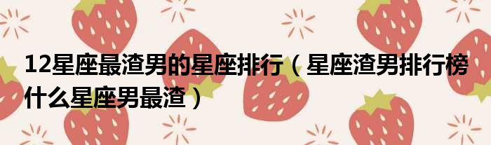 12星座最渣男的星座排行(星座渣男排行榜 什么星座男最渣)