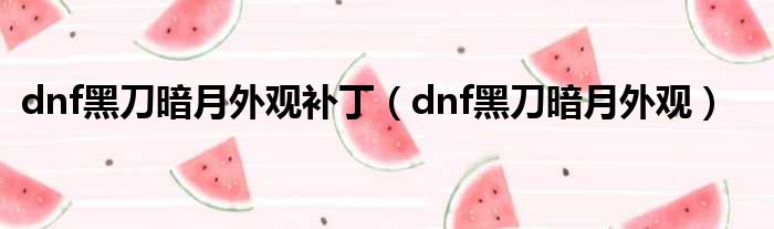 dnf黑刀暗月外观补丁(dnf黑刀暗月外观)