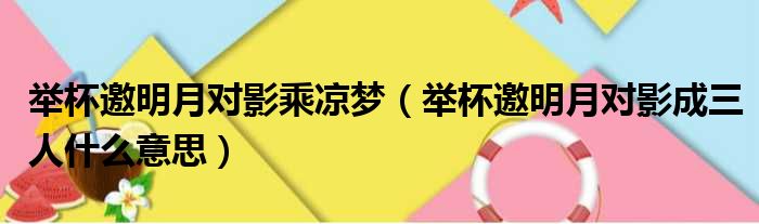 举杯邀明月对影乘凉梦(举杯邀明月对影成三人什么意思)