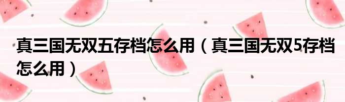 真三国无双五存档怎么用(真三国无双5存档怎么用)