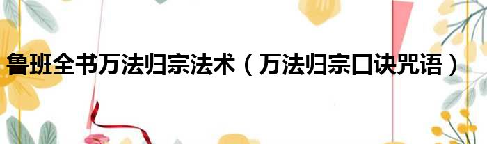 鲁班全书万法归宗法术(万法归宗口诀咒语)