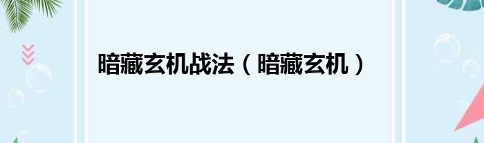 大家好,小东方来为大家解答以上的问题。暗藏玄机战法,暗藏玄机这个很多人还不知道,现在让我们一起来看看吧!