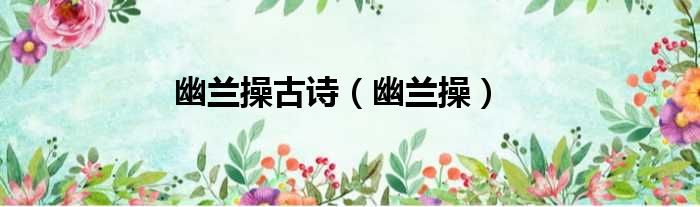 大家好,小东方来为大家解答以上的问题。幽兰操古诗,幽兰操这个很多人还不知道,现在让我们一起来看看吧!