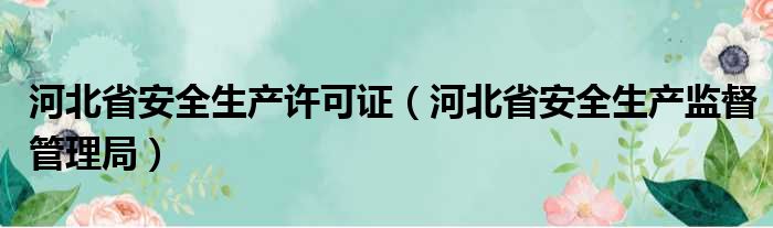 河北省安全生产许可证(河北省安全生产监督管理局)