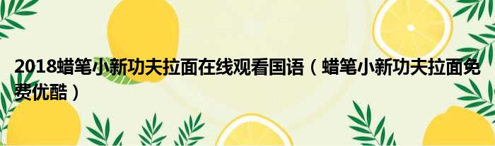 2018蜡笔小新功夫拉面在线观看国语(蜡笔小新功夫拉面免费优酷)