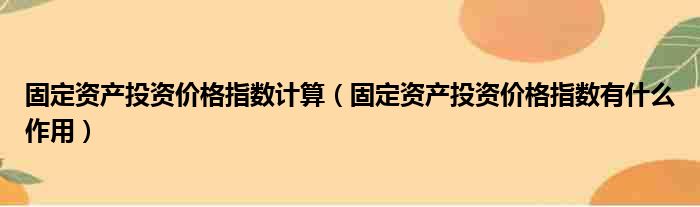 固定资产投资价格指数计算(固定资产投资价格指数有什么作用)