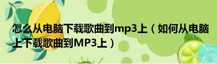 怎么从电脑下载歌曲到mp3上(如何从电脑上下载歌曲到MP3上)