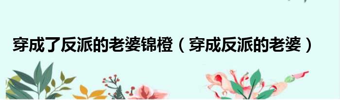 穿成了反派的老婆锦橙(穿成反派的老婆)