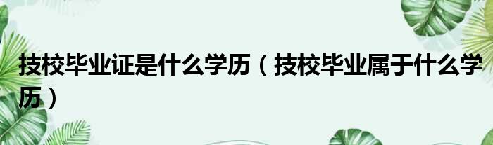技校毕业证是什么学历(技校毕业属于什么学历)