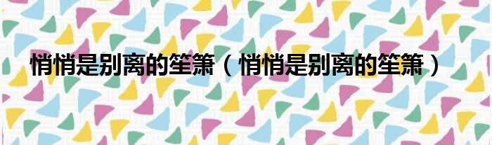 悄悄是别离的笙箫(悄悄是别离的笙箫)