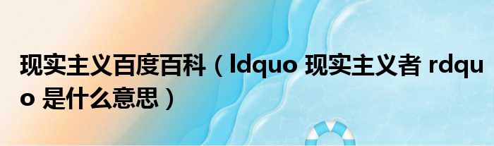 现实主义百度百科(ldquo 现实主义者 rdquo 是什么意思)