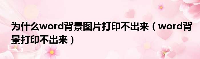 为什么word背景图片打印不出来(word背景打印不出来)
