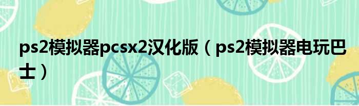 ps2模拟器pcsx2汉化版(ps2模拟器电玩巴士)