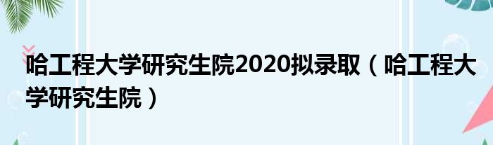 哈工程大学研究生院2020拟录取(哈工程大学研究生院)