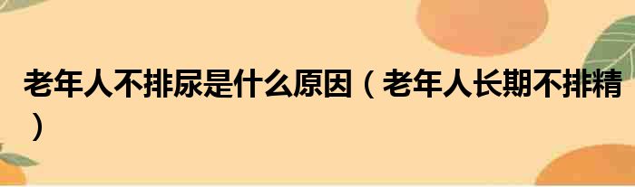 大家好,小东方来为大家解答以上的问题。老年人不排尿是什么原因,老年人长期不排精这个很多人还不知道,现在让我们一起来看看吧!