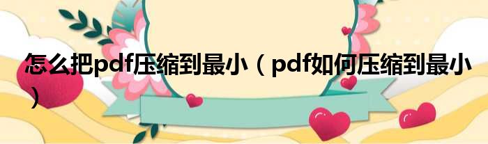 怎么把pdf压缩到最小(pdf如何压缩到最小)