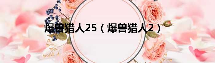 大家好,小东方来为大家解答以上的问题。爆兽猎人25,爆兽猎人2这个很多人还不知道,现在让我们一起来看看吧!