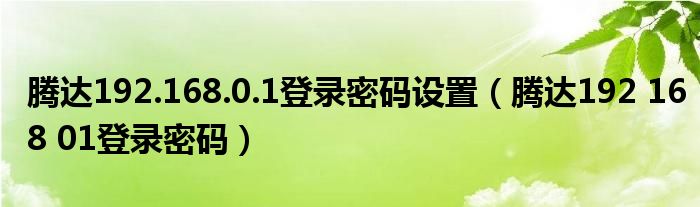 腾达192.168.0.1登录密码设置(腾达192 168 01登录密码)
