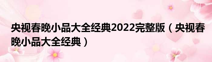 央视春晚小品大全经典2022完整版(央视春晚小品大全经典)