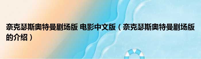 大家好,小东方来为大家解答以上的问题。奈克瑟斯奥特曼剧场版 电影中文版,奈克瑟斯奥特曼剧场版的介绍这个很多人还不知道,现在让我们一起来看看吧!