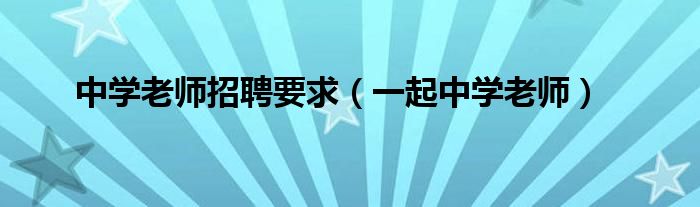 大家好,小东方来为大家解答以上的问题。中学老师招聘要求,一起中学老师这个很多人还不知道,现在让我们一起来看看吧!