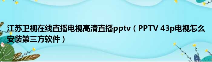江苏卫视在线直播电视高清直播pptv(PPTV 43p电视怎么安装第三方软件)