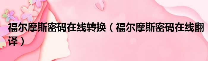 福尔摩斯密码在线转换(福尔摩斯密码在线翻译)