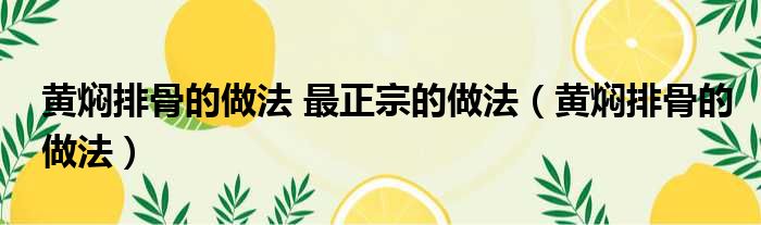 黄焖排骨的做法 最正宗的做法(黄焖排骨的做法)