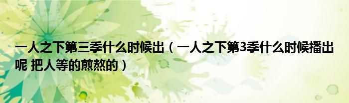 一人之下第三季什么时候出(一人之下第3季什么时候播出呢 把人等的煎熬的)