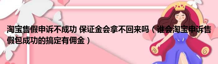 淘宝售假申诉不成功 保证金会拿不回来吗(谁会淘宝申诉售假包成功的搞定有佣金)