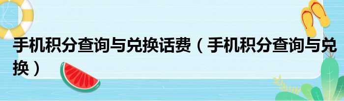 手机积分查询与兑换话费(手机积分查询与兑换)