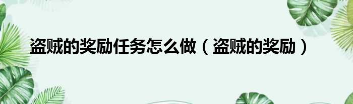 盗贼的奖励任务怎么做(盗贼的奖励)