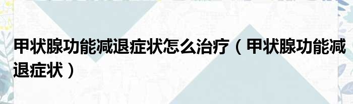 甲状腺功能减退症状怎么治疗(甲状腺功能减退症状)