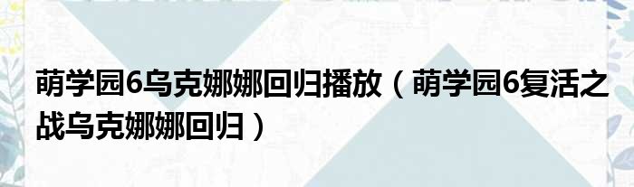 萌学园6乌克娜娜回归播放(萌学园6复活之战乌克娜娜回归)