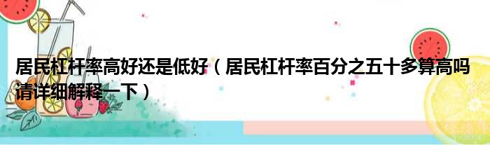 居民杠杆率高好还是低好(居民杠杆率百分之五十多算高吗 请详细解释一下)