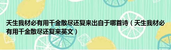 天生我材必有用千金散尽还复来出自于哪首诗(天生我材必有用千金散尽还复来英文)
