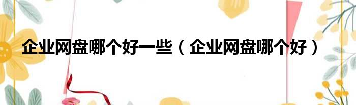 企业网盘哪个好一些(企业网盘哪个好)