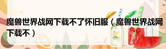 魔兽世界战网下载不了怀旧服(魔兽世界战网下载不)