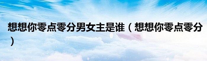 大家好,小东方来为大家解答以上的问题。想想你零点零分男女主是谁,想想你零点零分这个很多人还不知道,现在让我们一起来看看吧!
