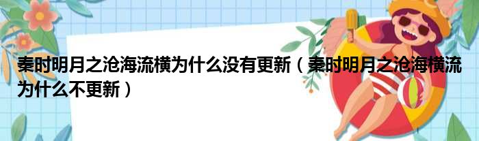 秦时明月之沧海流横为什么没有更新(秦时明月之沧海横流为什么不更新)