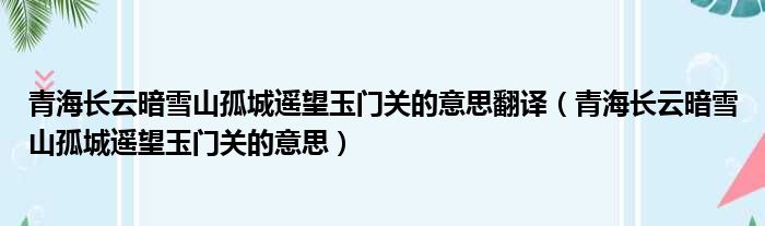 青海长云暗雪山孤城遥望玉门关的意思翻译(青海长云暗雪山孤城遥望玉门关的意思)
