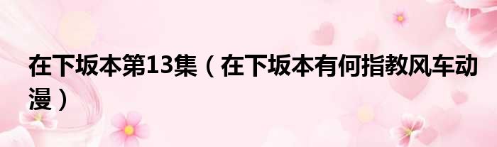 大家好,小东方来为大家解答以上的问题。在下坂本第13集,在下坂本有何指教风车动漫这个很多人还不知道,现在让我们一起来看看吧!