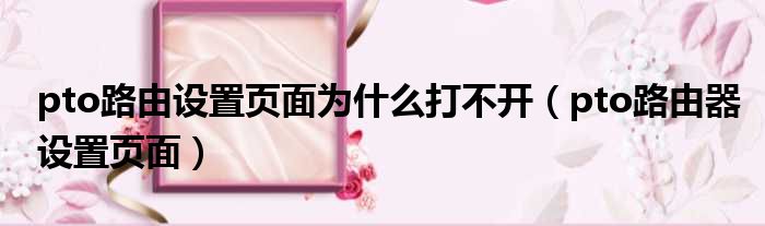 pto路由设置页面为什么打不开(pto路由器设置页面)