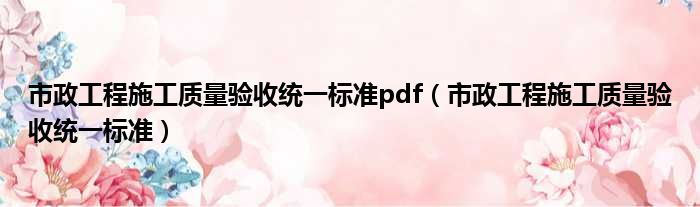 市政工程施工质量验收统一标准pdf(市政工程施工质量验收统一标准)