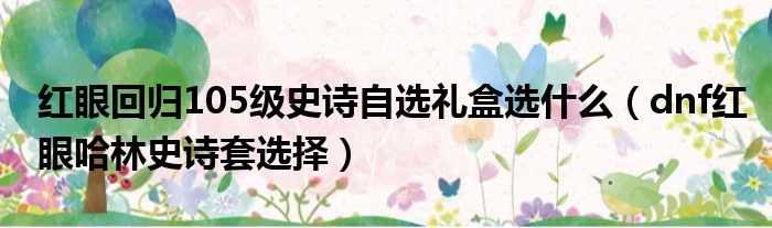 红眼回归105级史诗自选礼盒选什么(dnf红眼哈林史诗套选择)