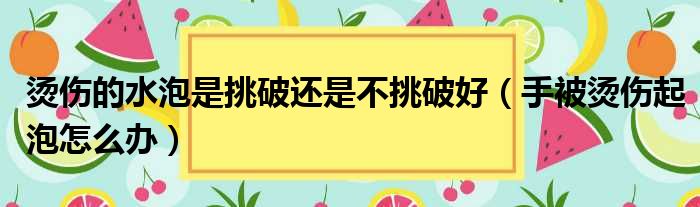 烫伤的水泡是挑破还是不挑破好(手被烫伤起泡怎么办)