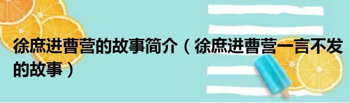 徐庶进曹营的故事简介(徐庶进曹营一言不发的故事)
