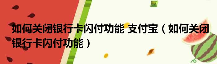 如何关闭银行卡闪付功能 支付宝(如何关闭银行卡闪付功能)