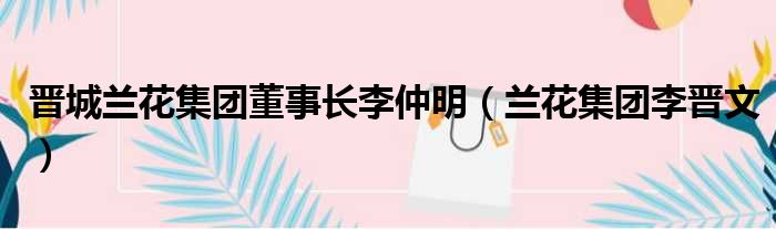 大家好,小东方来为大家解答以上的问题。晋城兰花集团董事长李仲明,兰花集团李晋文这个很多人还不知道,现在让我们一起来看看吧!